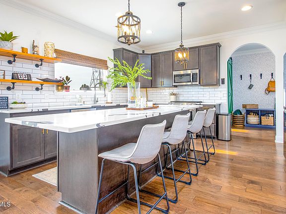 Open House SATURDAY, Aug 26th 2-4. Fixtures, design, and color in this Maryville city home are absolutely magazine worthy. Engineered hardwood floors, arched doorways, 9-foot ceilings, deep crown molding, on-trend light fixtures, an open concept, and loads of natural light welcome friends and family. The special features and pops of color throughout are in ALL the right places! Your backyard will be the one where everyone wants to hang out! The volcanic black inground pool with waterfall, color-changing lights, custom stone columns and pavers, turf grass (to keep grass out of the pool), gazebo, and firepit will be the envy of all your neighbors. The covered porch is another perfect spot to supervise kids in the pool. Fire up your grill and get the party started! Kitchen updates include gorgeous, unique quartz countertops, white subway tile backsplash, painted Shaker-style cabinets, new cabinet hardware, and open shelving. The super-sized pantry will quickly become a favorite! Or perhaps it will be the coffee bar? The main level home office, which is tucked behind a stunning, green barn door, boasts ample built-in shelving, and faces the back yard. It's easy to sneak in some work while keeping an eye on the kids in the pool! Strategic, hidden placement of the mudroom area right off the 2-car garage helps keep living areas tidy. Sellers updated the main level half bath with modern colors, light fixtures, and mirror. The staircase lined with wrought iron railing adds to the luxury of this home. The massive primary suite with ensuite bathroom boasts dramatic amounts of natural light - with a bird's eye view of your enchanting backyard and pool. Sellers have updated primary bathroom flooring, painted cabinets, added fashionable accent wallpaper, mirrors, and light fixtures. No need to purge - everything will have a place in this colossal walk-in closet! All 4 bedrooms and the bonus room are upstairs and fully carpeted.