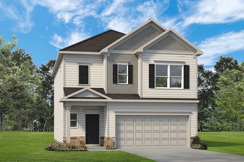 The Braselton II at Baker Creek Place by Smith Douglas Homes. Outdoor lovers prefer the Braselton II, by Smith Douglas Homes, for its unique rear corner covered porch, directly accessible from a large eat-in kitchen overlooking the family room. On the second floor, an over-sized loft separates the private owner's suite from two secondary bedrooms. Estimated completion date of 11/28/2023.