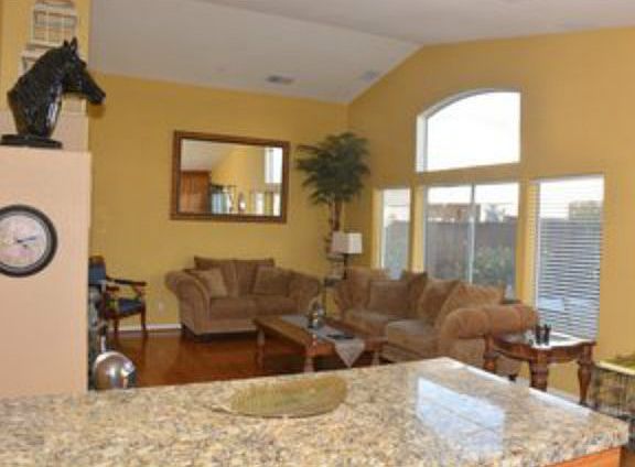 At first arriving on the property you will have the indoor option for 3 car Garage parking with push button access that drops your step out onto a professional rugged grey painted surface is a luxury to many. If that doesn't meet your standards then perhaps the large tile entryway from the garage to the downstairs master bedroom will. Massively sized, vaulted ceilings, dual sinks, huge walk in closet, stall shower with oversized tub combo leaves no doubt of whose area of the home you're stepping into. With nothing directly above the 12 foot + ceilings, you're bound to enjoy the night's rest and morning sunshine that peeks in from the sliding glass door which leads you outside to back patio. (Wired for a hot top and easy installation of wood fence can easily divide into a perfect private retreat. If approaching from the front Entrance you will again be greeted by the same large tiles into the formal living room/ dining room combo. Indoor laundry room makes laundry more convenient. The kitchen absolutely speaks of itself. Hardwood floors, granite countertops, detached island and more beautiful cabinetry than anyone would ever need. Dishwasher, built in microwave, and garbage disposal makes for an easy meal preparation which opens up into the other large living area, cozy fireplace, built in surround sound and flat screen tv arrangement can make you feel as if you're at the movie theatre. Upstairs is another private wing of the home. There are built in cabinetry for upstairs linens, folding, and ironing. 3 guest bedrooms and bathroom.