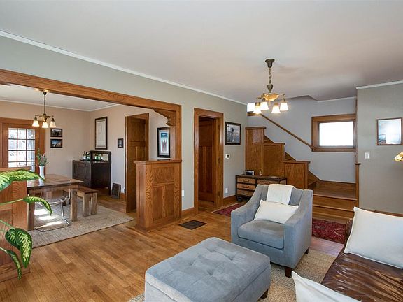 1920's four-square w/ large welcoming front porch. Charming character throughout w/ built in oak bookcases, hardwood flrs; 1/2 bath on the first floor and main bath with shower and claw foot tub, kitchen w/ SS appliances. Metal roof (Metal Monsters) w/lifetime warranty, leaf guard gutter, Stone paved driveway & garage door. .Fenced back yard featuring edible/medicinal plantings & gardens; "cob" oven for pizza & bread. Great north-end neighborhood w/ central location walking to schools and downtown.