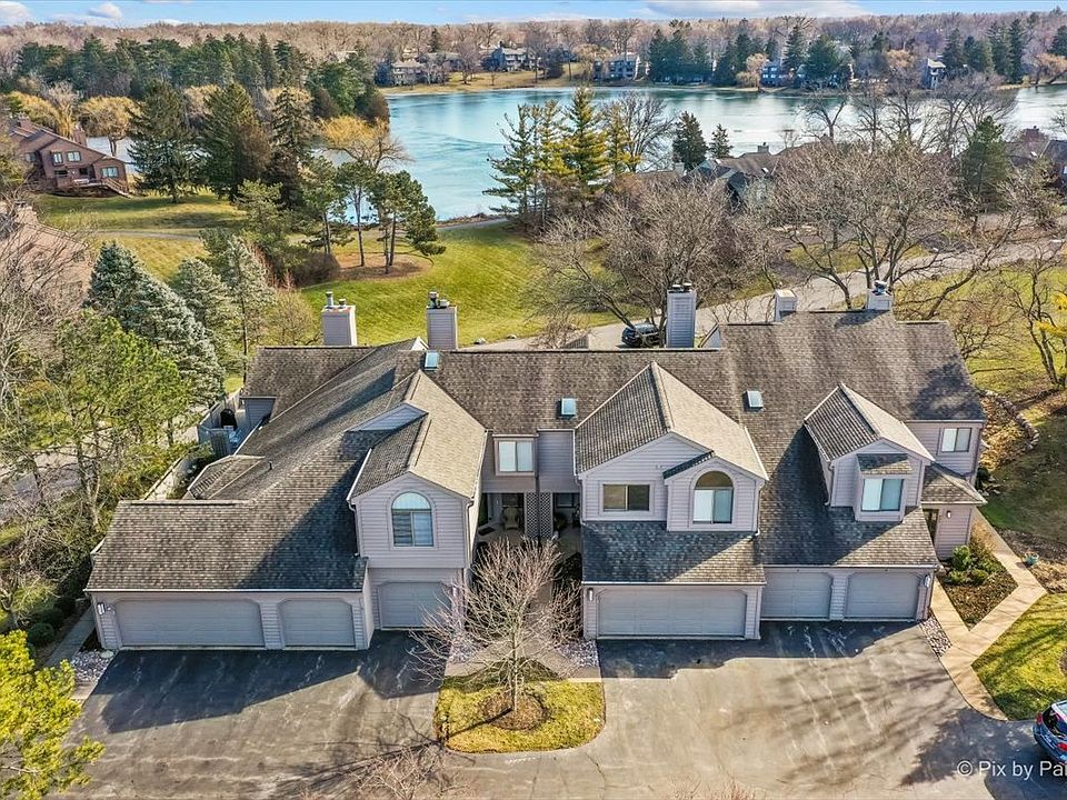Experience the allure of this captivating 3-bedroom Broadmoor Model Townhome boasting a walkout basement - a true gem awaiting your admiration! Step inside to discover the owner's meticulous enhancements, including new hardwood flooring on the main level and a striking stone fireplace, complemented by a thoughtfully added Den/Office area. Delight in the stylish kitchen adorned with maple cabinets, stainless steel appliances, and an adjoining dining area. Recent upgrades include a new refrigerator, microwave, and dishwasher. The walkout basement presents a spacious family room, a generously sized bedroom, and a bathroom. Revel in the updated master bath featuring a skylight and a luxurious jacuzzi tub. The master bedroom offers two closets, including a walk-in, and showcases a picturesque distant view of the main lake. Enjoy outdoor living with three inviting spaces - a patio, deck, and balcony. With an attached 2-car garage providing ample storage and a large walk-in pantry, convenience is at your fingertips. The condo association has undertaken recent renovations, including a new roof, siding repairs, and a fresh garage door installation. Discover the essence of resort-style living in this unique gated community, boasting a 100-acre lake, beach, marina with resident-accessible kayaks and sailboats, a 37-acre forest preserve, and an array of amenities such as tennis courts, bocce courts, pickleball, indoor and outdoor pools, and an 18-hole golf course (membership required). The completely renovated community center offers a ballroom, party room, fitness center, library, and more. Enjoy a plethora of activities for all ages, both planned and spontaneous, in this meticulously maintained community with full-time security ensuring peace of mind. Experience the ultimate lifestyle - schedule your viewing today!