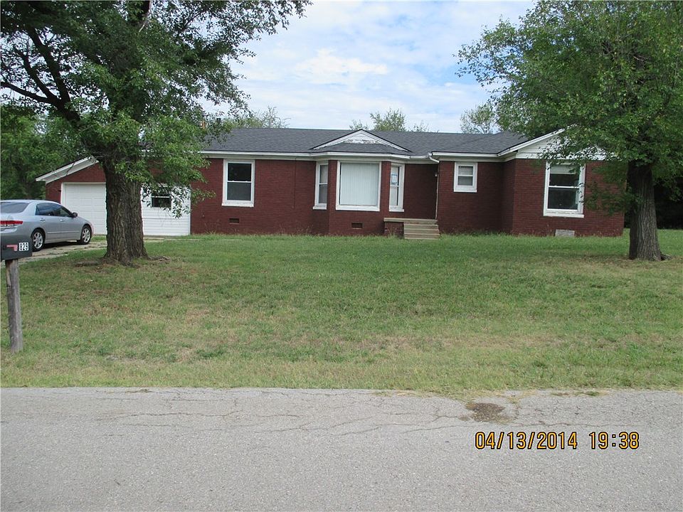 Bank owned foreclosed as is property. 2 car garage has one section for laundry area and the other side is a one car garage. An Added workshop is attached at the back of the garage w/plumbing. Vinyl siding on trim. Fireplace in living room w/bay window; large picture window in dining room. Kitchen has laminate floors, microwave. Gas stove is missing. Large closet in master. Nice size laundry. .67 acreage. Seller to close Seller title at Chicago Title, 5617 N Classen Blvd, Okcy 73118. Winterized.