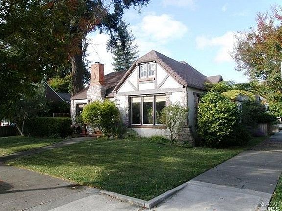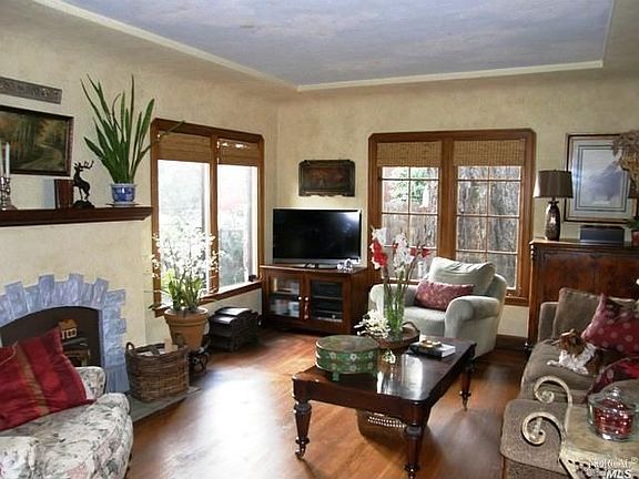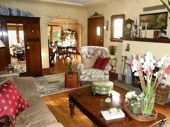 This circa 1941 California Bungalow has been tastefully remodeled and upgraded throughout the years. Amenities include rich hardwood floors, huge living room with coved ceilings and fireplace, formal dining room, spacious country kitchen w/tile counters, tiled bathroom w/tub & shower, two charming bedrooms. There is an indoor laundry which leads to a deck/fenced patio area & total privacy. One-of-a-kind! DR & Breakfast fixtures excluded