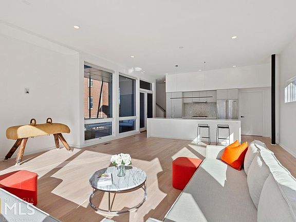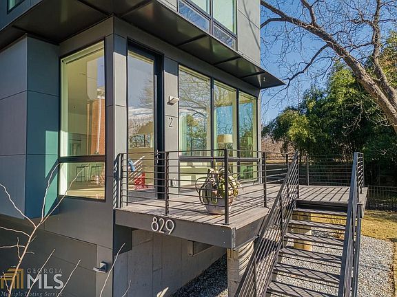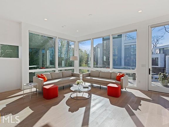 Incredible Modern Townhome designed by award winning architect Robert M. Cain - Sleek design open concept main level with wall to ceiling windows for wonderful natural light and views! High-end upgrades throughout! Natural color wide plank flooring on all levels -Kitchen has HUGE Krion Island, Viking appliances, Carrara Marble and a walk in pantry! Oversized Master Bedroom with walk-in custom his/her closet system - Master bath with double vanities with walk-in double shower with his/her shower heads! All bedrooms have custom closet/dresser systems - A Spiral staircase leads you up to rooftop outdoor terrace - private with incredible views! there is also a perfect private area on upper level for desk/workstation or a Peloton Bike with inspiring views! There is a large covered patio off the main level perfect for additional entertaining! There is also a hard to find private fenced back and side yard with firepit! Lot next door is park so no obstructing views ever! 2 car attached garage with car charger - 2 blocks from beltline and Ponce City Market! Walk-Score a "10"