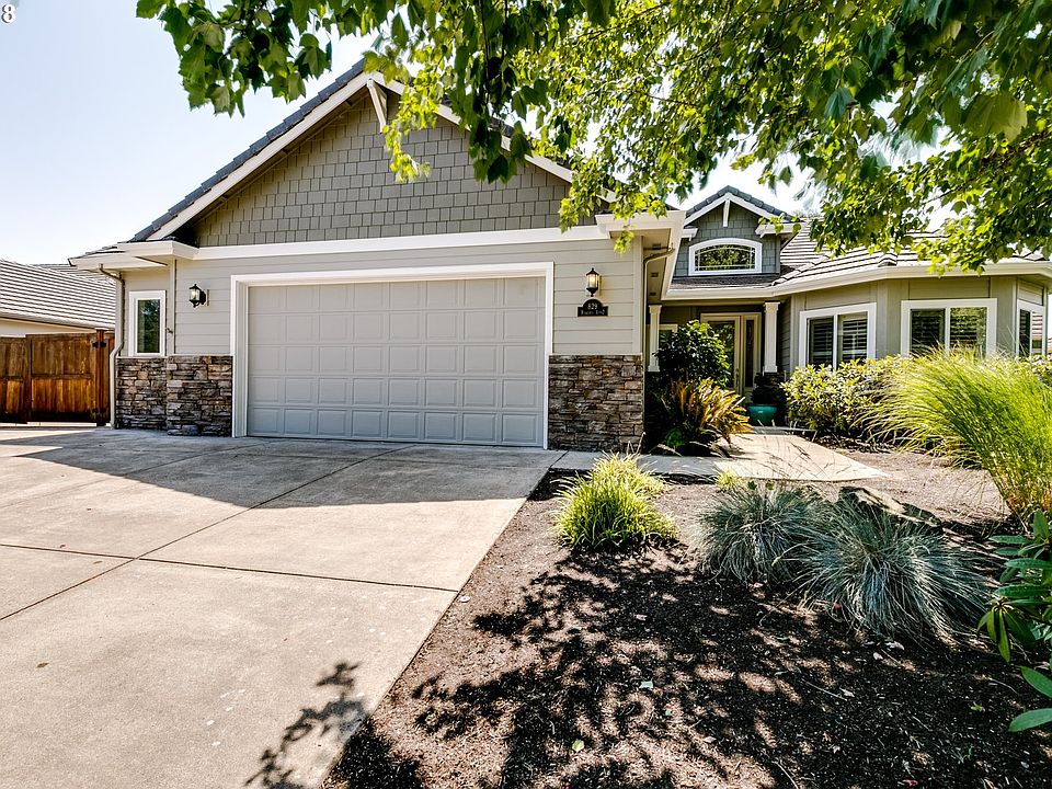 Light-filled home on quiet street in desirable River Glen neighborhood. Open concept, vaulted ceiling, hardwood floors, bay windows and gas fireplace. Gas range and walk-in pantry. Spacious master with walk-in closet and soaking tub. In-wall vacuum system. Covered patio with gas BBQ hookup. Easy-to-care front yard, 2-car garage with built-in vacuum and storage loft. RV parking and hookups. New exterior paint. All appliances included.