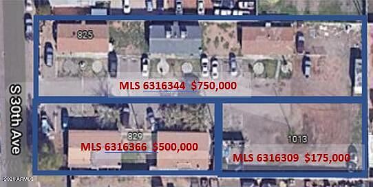 4 Units, 2 Building 100% occupied. Tenants are month to month, Rent can increase to reflect current market rates. Adjacent units available for sale as well: Over-sized lot with opportunity to build another 4 units MLS 6316309 & 825 S 30th Ave (6 Units, 3 Building) MLS 631634410 minutes from Downtown Phoenix. Close to I-10 and I-17 HWY, Amazon and Fedex warehouses