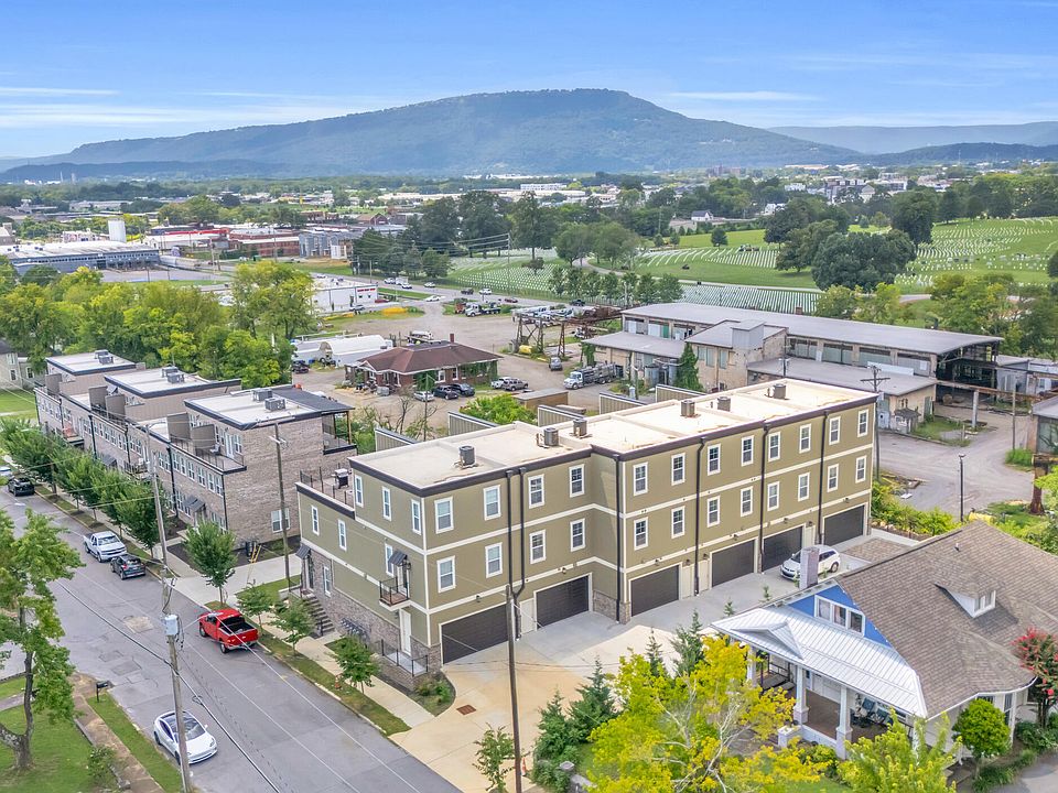 Perched above the heart of Highland Park, 829 S. Greenwood Avenue, #109 offers a refined blend of modern design and effortless city living. Its crown jewel- a sprawling rooftop deck- captures sweeping views of Lookout Mountain, where each evening unfolds into a golden sunset. Inside, 10-foot ceilings, stunning windows and clean architectural lines frame the airy, light-filled living spaces. The chef's kitchen, anchored by an oversized island, pairs sleek cabinetry with a gas range, creating a space equally suited for culinary pursuits and casual gatherings. The primary suite is a private retreat, complete with a covered porch, an en suite bath with dual vanities, and a floor-to-ceiling tiled shower. A second bedroom with en suite bath and a separate laundry room complete the second floor. The third floor offers a spacious guest suite and full bath, just steps from the rooftop terrace. The terrace may be accessed from the bedroom or the hallway. A rare two-car garage adds convenience to this low-maintenance home, perfectly positioned just steps from Chattanooga's best dining, coffee, and culture. Downtown Chattanooga, UTC and Erlanger Hospital are also located a mere 5 minutes away, making your commute a breeze. Call today for a private showing- this townhome is not one to be missed.