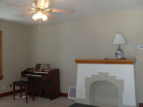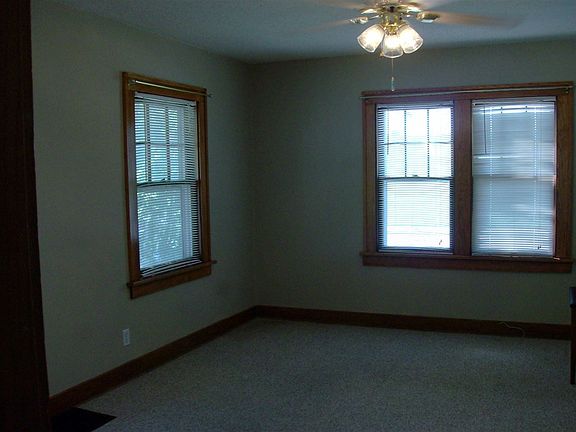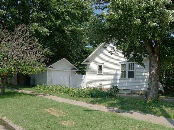 Charming bungalow on corner lot in a quiet tree lined neighborhood with easy access to work routes. Great starter home for 1st time buyers. Cheaper than rent. Welcoming front porch, move in ready carpeted living room with decorative fireplace. Updated oak kitchen cabinets, smooth top range/oven and range hood, laminate wood flooring. Paddle fans in living room, both bedrooms, kitchen and breakfast nook. Home has forced air furnace, central air and new storm windows. This 2BD home has full basement with access from inside or outside entry. Basement was once used as an apartment. Easy access to detached garage and shaded back yard.