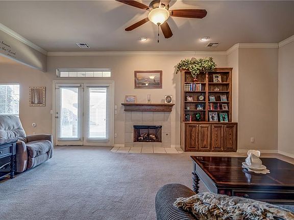Lovely home in the quiet Katie Ridge 3 addition on the East side of Moore. This 3 bed/2 bath home is well maintained, move-in ready! Living room has decorative bookshelves, crown molding and a fireplace. Master Bathroom has whirlpool tub,separate shower with dual sinks and huge walk-in closet. The secondary bedrooms are the perfect size and share the guest bathroom. Nice backyard has a covered patio, a great place to entertain and relax.Make this home YOURS today!Buyer to verify all information.