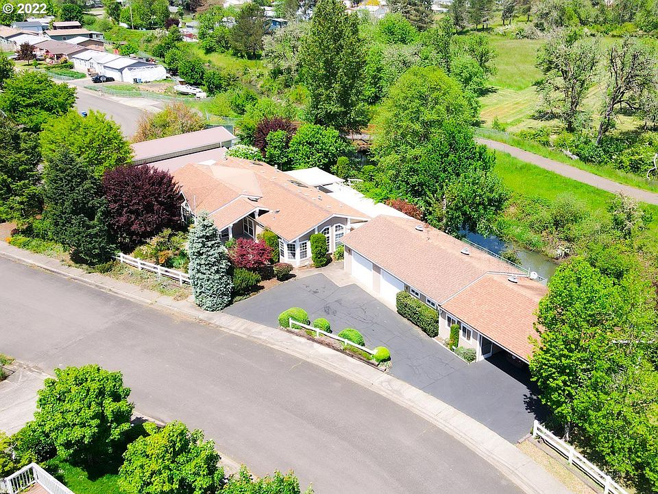 Spacious and Wheelchair accessible single level manufactures home on large lot with creek frontage! This home is equipped for wheelchairs with ramps, wide doorways, roll-in shower, and wheelchair accessible kitchen. Home has a 3rd room with no closet that could be used as an office 3rd bedroom! Enjoy your tranquil outdoor area with covered patio and deck that looks out over the creek. Property also features covered RV parking and hookup, a detached 2 car garage with bonus craft room with sink
