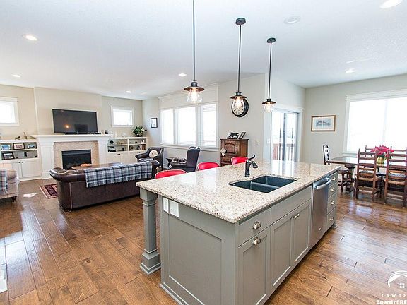 Incredible Ranch Style living in this 4 bedroom, 3 bath, 3 car garage with finished Walk-out basmt. Quality Minnis built home in Langston Heights. Spacious Kitchen overlooking Living Room with walk-in Pantry, large Granite Island, SS Appliances W/ Gas Stove. Large Utility Room includes Washer & Dryer. 2nd Bedroom on main floor. 2 more Bedrooms, full Bath, Family Room & Wet Bar in basmt. 12x19 Covered Deck. All Appliances remain. Close to Langson Hughes Elementary, Rock Chalk Park, I-70 & K-10.