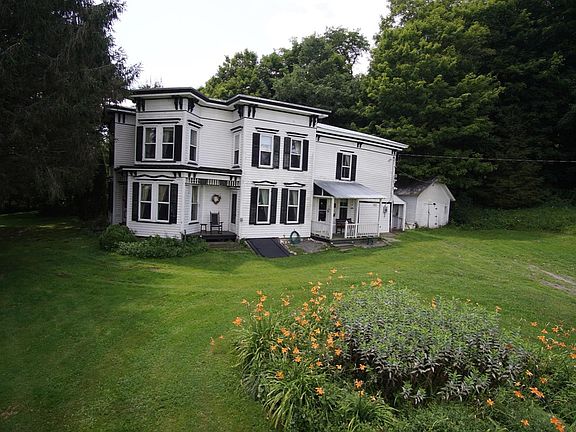 This Old Style farmhouse on 90+ acres with history dating back to the 1800s and the Civil War was home to a large-family dairy and crop & hay farm with maple syrup production as a side crop. Offered below appraised value (2019)! Four sun-splashed bedrooms, three baths on two floors with fine millwork and hardwoods throughout. Needing TLC to restore to its former glory. Three porches. The parcels feature a 3 story 3100+SF dairy barn, 2-car garage, stone smoke house, chicken coop, two-story post and beam bunkhouse. Ideal for deer hunting, hiking, snowmobiles and sledding. New 200 amp electrical supply line, newer well and water pump, hot water heater. Oil-fired boiler regularly serviced. Property is offered in as-in condition, inspections for buyer information only.. Seller is providing a Home Warranty at no charge to buyer.