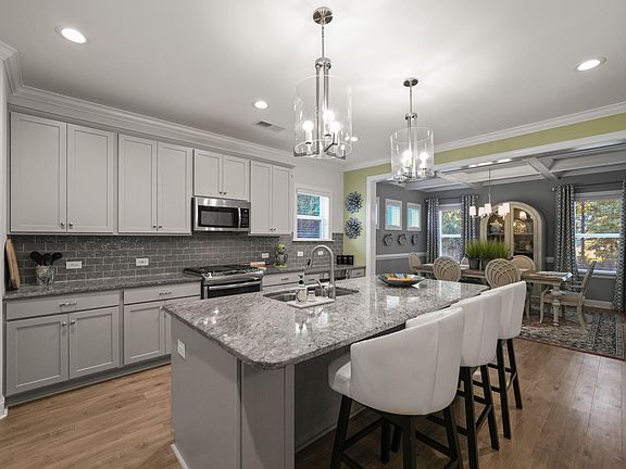 - Bathtub/Shower Combination, Bookcases, Coffered Ceiling(s), Entrance Foyer, Granite Counters, High Ceilings, Kitchen Island, Kitchen/Dining Room Combination, Open Floorplan, Pantry, Smooth Ceilings, Walk-In Closet(s), Walk-In Shower, Water Closet
