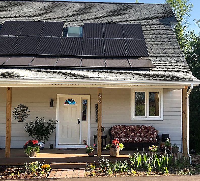 This thoughtfully designed 2 bedroom, 3 full bathroom, 2,276 sq.ft. attached home features a private backyard facing the woods and creek and a rooftop terrace. The home has an open floor plan kitchen/dining room/living room area, and a study/den/home office space. There are 9' ceilings throughout the home, gorgeous Acacia hardwood floors, a cathedral ceiling with skylight, and plenty of large casement windows making this a bright, beautiful home with wintertime mountain views. The finished garden-level basement completes the house as a very large second bedroom that could easily be converted into 2-3 rooms or used as any other type of living space you desire. The main floor can be converted to single floor living. For a virtual tour of the home go to https://youtu.be/0cnxH0RB7Wk Additional features: Warranties are transferable to the new owner Movable kitchen island Pelican whole house water filter system Utility room with sink and unfinished storage space Trex composite decking Fiber cement siding South-facing solar panels that can be hooked up for net metering, battery storage or a hybrid system (not included) Two off-street parking spaces