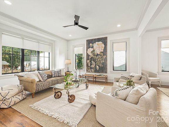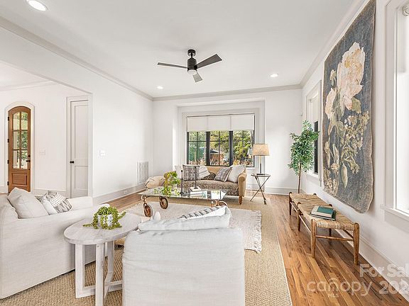 Welcome to 829 Tennyson Drive in Charlotte's Enderly Park neighborhood. This modern Tudor home sits in a row of beautifully curated properties with proximity to Uptown and major highways. This property was developed in 2022 by Jeff Chance Custom Homes (JCCH) now Forte Builders, a name synonymous with quality in the home building industry. Step inside to an open floor plan with generously sized rooms, high ceilings, and loads of natural light. The fresh and modern interior has upgrades that include intricate trim and moldings, site-finished hardwood floors, designer tile, elegant lighting, high-quality plumbing fixtures, custom kitchen and baths, and more. Outside, the exterior charms with inviting curb appeal. Off the rear there is a screened-back porch, fenced yard including electric driveway gate, dry sauna, and even a Tesla charger. Custom roller shades and refrigerator and washer/dryer are included. Gently lived in and ready for a new owner. Make sure to schedule a tour today!