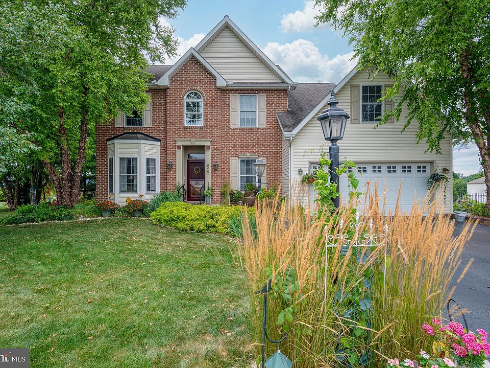 Stately partially-brick home with 4 bed, 2.5 bath, approximately 2,600 finished Sq. ft. with 1st floor office. You'll love the large island kitchen that features granite countertops, tile backsplash, and gas range! Entertain or relax in the 3-seasons room overlooking the private fenced-in backyard. The grand 2-story foyer welcomes you with a curved staircase and hardwood floors that extend throughout the main level. The first floor also features formal living and dining rooms, a cozy family room with a gas fireplace, a powder room, an office, and a convenient laundry/mudroom. Upstairs, retreat to the primary ensuite with a generously sized remodeled bath offering a soaking tub, glass surround shower, and dual sinks. Completing the second floor are three additional bedrooms and a full bath with a tub shower. The fenced-in backyard includes a stamped-concrete patio, gazebo, firepit, mature trees providing privacy, and a charming vegetable garden with a plum tree. Updated mechanicals include brand new gas furnace and central A/C, newer gas water heater and architectural shingle roof! Ideally located within walking distance to Pine Street Elementary, Palmyra Area Middle and High schools, and surrounded by walkable sidewalks, this home is a must-see. Schedule your private showing today before it's gone!