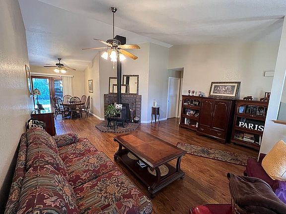 Living Room-laminate flooring, vaulted ceiling, ceiling fan, Bay WIndow