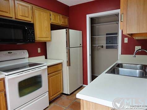Great NC, small (40 units), well-kept condo community. Controlled entry. Pool. Very nice ,hurry! Near golf course. 25 lb.pet restri.(enforced).Fridge w/icemaker.Seller had daybed w/ bolsters in dining room & used it as bedrm. + desk/table for computer, etc. Saltillo in entry, guest bath, kitchen & laundry. Private patio off kitchen. Upstairs bedrm had queen bed + twin beds.Gently used as a 2nd home.Condo not FHA/VA certified(?) & they won't do it! Great location to 410/281/ downtown/1604. Brokered And Advertised By: Home Team of America Listing Agent: Barbara Sanders