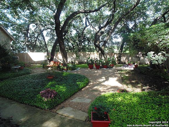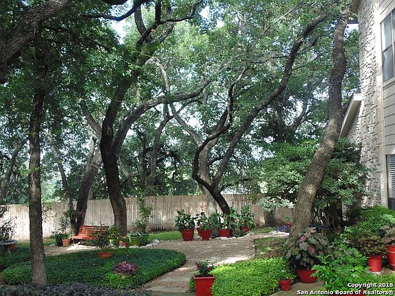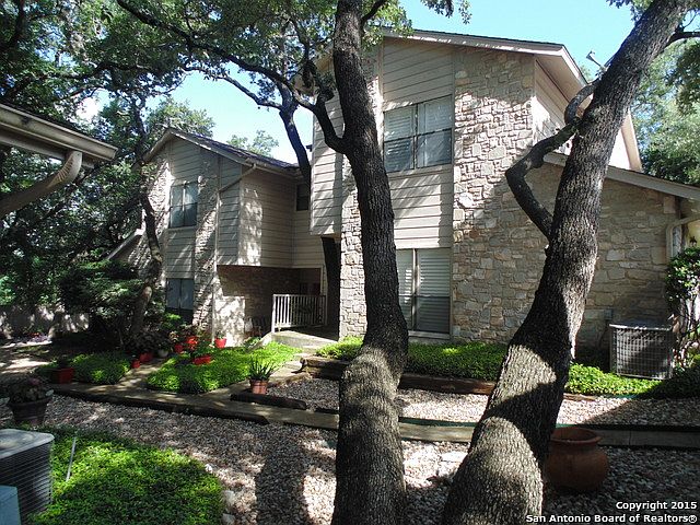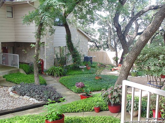 Awesome Condo in a wonderfully maintained complex. Two bedrooms and 1 and a half baths. Plantation Shutters and ceiling fans throughout, wood flooring in bedroom and family areas, Tile flooring and granite counter-tops in kitchen. Stacked washing machine and dryer in utility closet. Easy access to 281 and 1604. Two covered parking spots just outside of the back door. Open front door and you are greeted by a beautifully maintain courtyard. Expect the best and your expectations will be exceeded