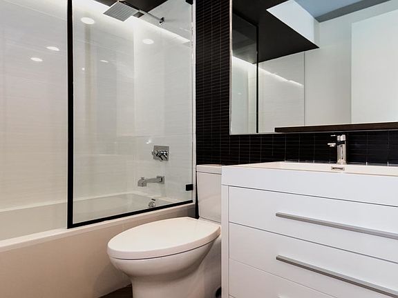 Serene, Tranquil, Spacious, and LUXURIOUS - this is the last apartment youll have to see on your apartment search! In a prime location right off of Fulton Street and Atlantic Avenue featuring terrific strips of stores, outlets, restaurants, as well as a few bars and clubs. Just blocks from the A, C, and S trains, in a building that features virtual doorman and code security systems, laundry, and a magnificent roof deck with unobstructed open-city views of the Manhattan skyline. A beautiful BRAND NEW 2 bedroom, its got everything youd want in your dream home A/C UNITS IN EVERY ROOM, oak hardwood flooring throughout, recessed lighting, high ceilings, tons of natural light, French doors, and massive closets in every bedroom (which can all fit King sized beds, dressers, and nightstands with room to spare!). The living room can fit all of your furniture too! Plus a separate kitchen with granite countertops and stainless steel appliances, marble bathroom with an enclosed shower and tub. Ill say it again, this is the last apartment youll have to see in your apartment search NO BROKER FEE NO FEE