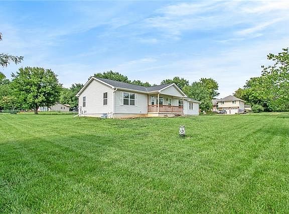 Conveniently located right off of KS-7 and in the Desoto school district, this ranch has a wonderful open floor plan that includes the kitchen, dining area and living room. Offers three bedrooms (two large bedrooms), two full baths and a kitchen with 2 pantries. Has been updated with a 2 year old roof, brand new carpet in living room and bedrooms and laminate wood-grain flooring in dining area. You can enjoy sitting on the front porch or the patio in the back.