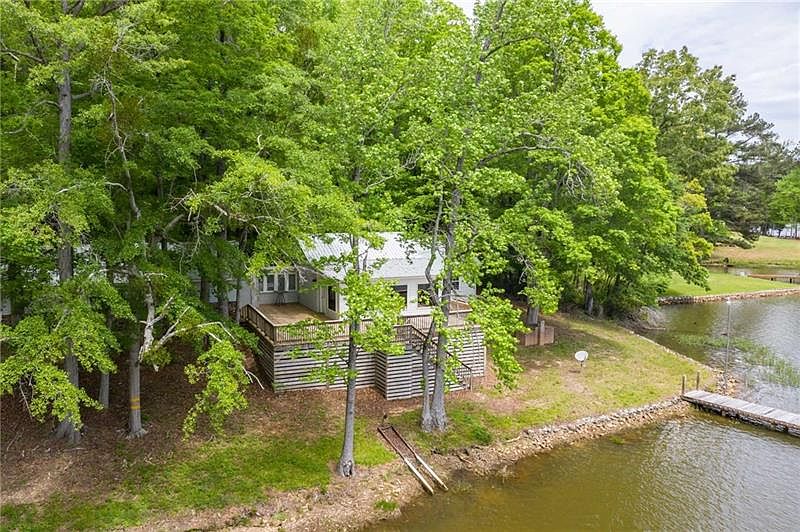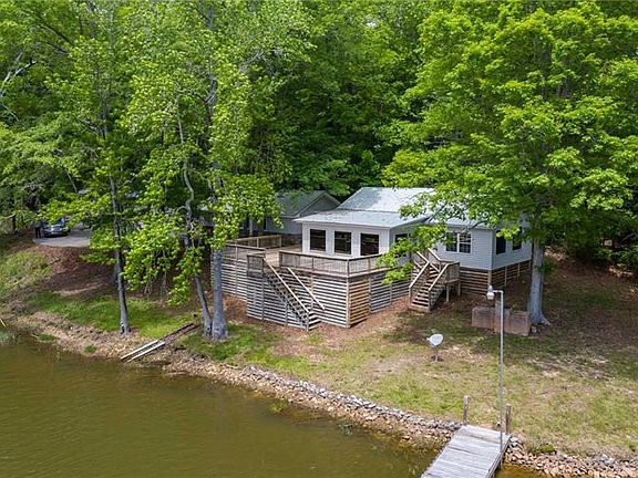 The long, enchanting driveway leads you to this DEEDED property at Lake Harding! 2010 sqft remodeled home with 261 feet of water frontage. Enjoy this cozy home with an abundance of outdoor space to entertain at while relaxing in this quiet cove on Lake Harding! Updated kitchen and bathrooms, new cabinets, granite counter tops & stainless-steel appliances. LVP flooring and new paint. Two HVAC units and two water heaters. 2 car garage/workshop, outdoor deck and indoor entertaining space at the "Retro" Tiki Bar. Does not get any better than this to start enjoying lake life! Deeded .91 ac lot in private cove with 261 feet of waterfrontage! Updated and move in ready! Large bonus room could be master suite. Lots of potential on this deeded property!