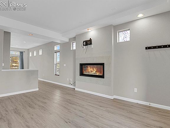 Welcome to this charming home in the desirable Banning Lewis Ranch community - awaiting your personal finishing touches. From the moment you arrive, you'll appreciate the beautiful landscaping and inviting covered front porch. Inside, the open-concept main level features a spacious living area with an inviting modern gas fireplace, dining space and a bright kitchen with abundant cabinetry, a large island and access to the backyard patio - perfect for relaxing or entertaining. Don't miss the low-maintenance pet friendly artificial turf in the backyard! Upstairs, you'll find three comfortable bedrooms plus a versatile loft that's ideal for an office, playroom or workout area. The primary suite offers a generous walk-in closet and private bath with dual vanities. The unfinished basement provides plenty of room for storage or future expansion. Enjoy all the amenities of Banning Lewis Ranch - including several parks (including one right around the corner), trails, pools, fitness center, pickleball courts, clubhouse and community events such as concerts, farmers markets, and festivals. Conveniently located near top-rated schools, shopping and dining.