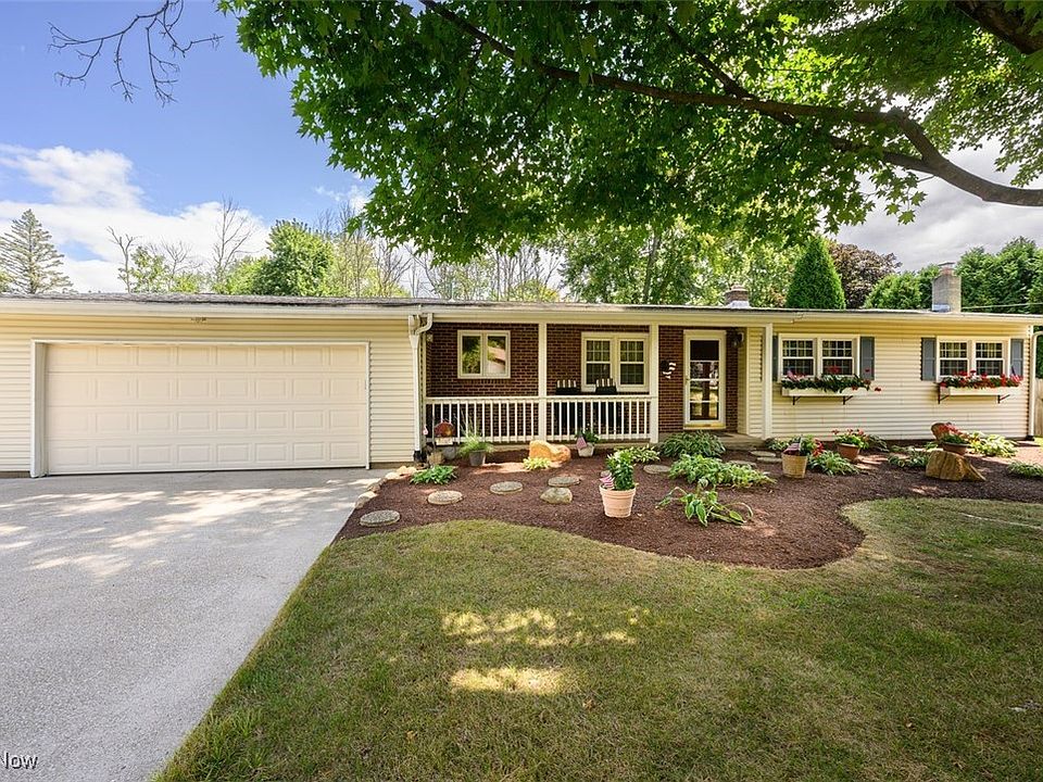 Impressively well-maintained North Canton Ranch with 3 bedrooms and 1.5 baths. Lovely Landscaping and a covered front porch lead to eat in kitchen. Spacious living room with quadruple door to massive Trex deck. The backyard view is a firepit, shed, impressive landscaping/gardens, and a tree line with no one behind! There is also a sunroom connected to the living room and back of the garage. Three bedrooms each with double closets. The master has a private half bath with double sinks. Main bath is nicely updated with Corian counters and double sinks. Huge lover level with half finished with a woodburning stove and glass block windows. Tons of storage, built-in shelves, updated electric with a generator, water softener and reverse osmosis. The seller is including the washer, dryer, and a freezer. Oversized garage as well as additional concrete parking next to garage for your boat or camper. Lovely home!