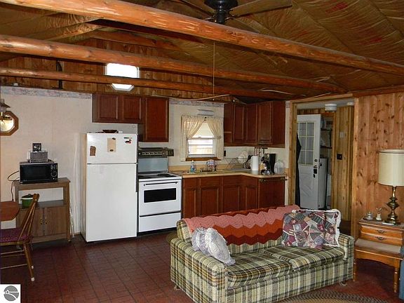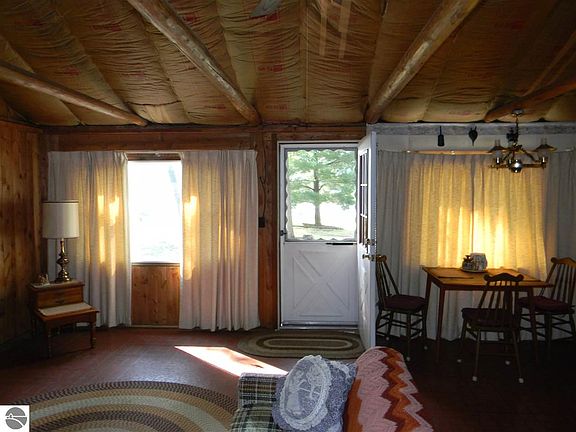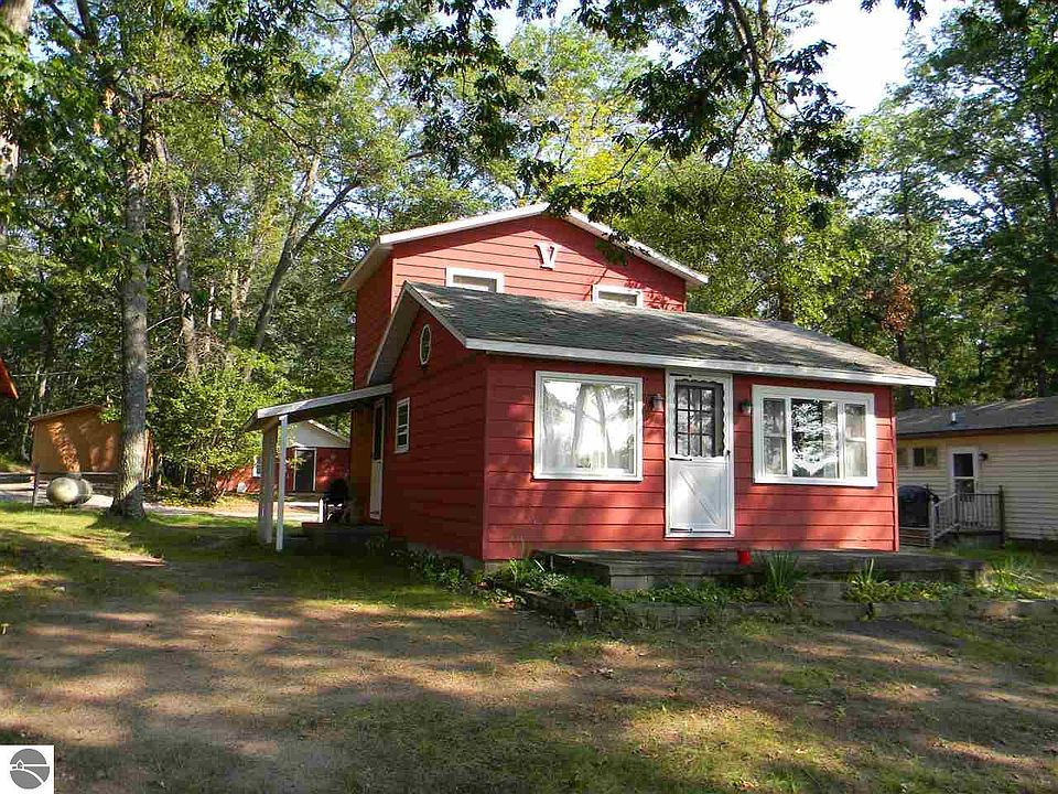 Here's a great waterfront property with a solid cottage and a nice garage. Some finish work and you could make it a doll house! 50 feet of good frontage with sandy area, level lot for all ages, and a very deep, wooded lot, gives you a nice feeling of being up-north! Room for extra buildings, septic system, parking! Affordable at under 100K, and close to trails for the ORV's, this fits all needs!