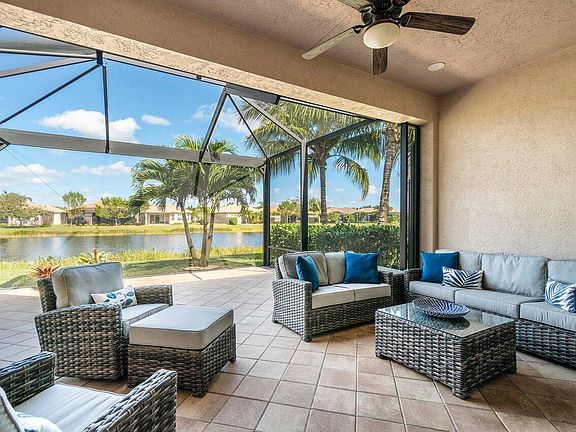 This incredible lake view Rebecca model features 2 bedrooms, an oversized den and 2 bathrooms. With an extended picture frame lanai, the property is beautifully landscaped. Upgrades include a gorgeous kitchen, impact resistant windows, closet systems in all bedroom closets, 24x24 brick laid tile floors in living spaces and ''wood tile'' in the master bedroom, Great Room built-in wall unit, tons of recessed LED lights, upgraded window treatments and light fixtures with sliding glass door shades on remote control, Gutters, A/C HEPA filter and UV light, upgraded Washer and Dryer, widened driveway and walkway, epoxy garage floor and much much more. HOA Fee includes lawn care, alarm monitoring, cable and internet.