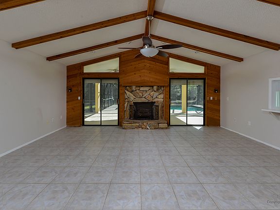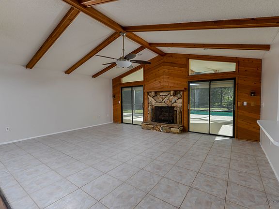 Right off of Commercial Way and minutes to Cortez Blvd. Crystal clear Weeki Wachee Springs is just minutes away. This jaw dropping family room is complete with a wood paneled wall in front of the massive fireplace and a wood beamed cathedral ceiling above. Rustic laminate flooring greets you in the entry way and down the hall. Tile floors are in the rest of the home. The breakfast bar passthrough window in the kitchen is great for entertaining and closet pantry, loads of cabinets and counterspace, along with the stainless steel appliances. The guest bedrooms have ceiling fans above and are a comfortable size, one provides a double closet. The master bedroom has private access to the back lanai, a walk-in closet, and an attached bath. The massive size lanai was built for entertaining.