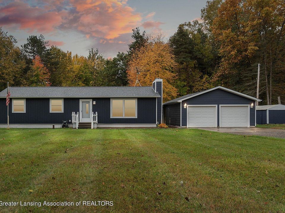 8291 Tyrrell Road is a meticulously maintained 3 bedroom ranch situated on a scenic 1.5 acres in Laingsburg. The home features all new windows, roof and siding – work completed in 2022! The spacious living room has brand new carpet and wood burning fireplace. A large family room overlooks the beautiful backyard and connects to three season room; a perfect spot to drink your morning coffee and watch the surrounding wildlife.