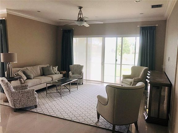 • Interior Features: Ceiling Fans(s), Open Floorplan, Walk-In Closet(s), Crown Molding, Solid Wood Cabinets, Thermostat, Living Room/Dining Room Combo, Solid Surface Counters, Window Treatments, Coffered Ceiling(s)