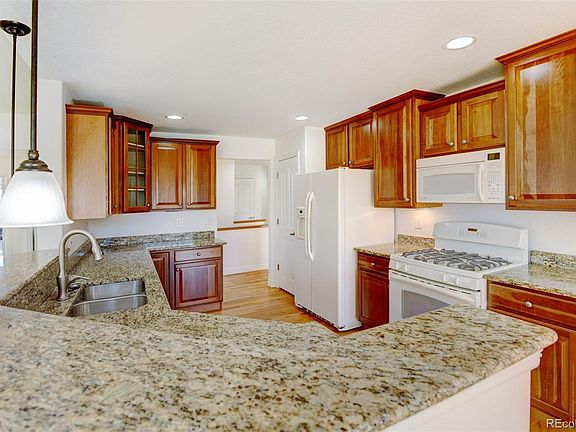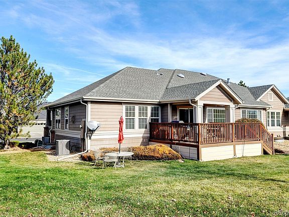 Here is the one you have been waiting for! Located in the gated 55+ golf course community of Heritage Todd Creek! Sit outside on the private deck and enjoy those wonderful Colorado evenings. Rare lot that backs and sides to a large, quiet greenbelt. Very low maintenance with all all exterior building maintenance, landscaping and snow removal included in the HOA amenities, along with the stunning clubhouse, indoor pool, hot tub, fitness center, tennis/pickleball courts and plenty of planned activities to join in on! MAKE SURE TO VISIT THE CLUBHOUSE AND ALL ITS AMENITIES LOCATED AT 8455 Heritage Dr, Thornton!Open, ranch style floor plan with main floor laundry and full unfinished basement! Kitchen boasts 42 inch cherry cabinets, granite countertops and hardwood floors. Brand new paint throughout the whole 1st level interior, just completed November 2023. Cozy gas fireplace in the great room. Furnace and AC were replaced approximately 2 years ago! This home is light and bright with large windows, ready to move right into! Nothing like this currently for sale at this price, come home today!