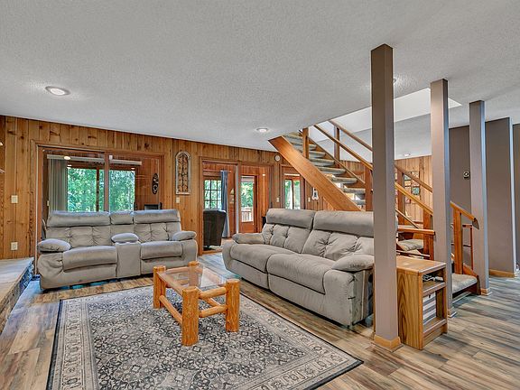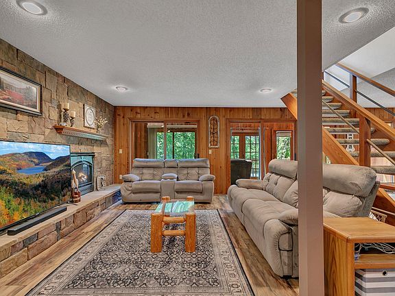 Welcome to your 2.69 acre forest retreat! This sweet property offers privacy with the security of a neighborhood. As you enter this 3 bedroom, 3 bathroom, 2 story home, you feel the sensation of peace and cozy comfort. The living room features a large stone fireplace with some beautiful cedar paneling accents. The two upstairs bedrooms have their own private full bathrooms. The 3rd bedroom and family room are in the basement. There's a large deck overlooking the fenced in portion of the yard, great for containing pets. The home was designed and built with energy efficiency in mind. The land has trails for walking or driving your ATV and there's plenty of room to build a shed. New roof in 2023 and new septic system in 2021.