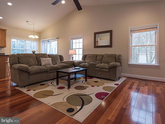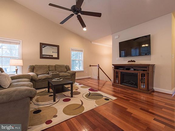 Privacy fenced corner lot with stunning home offering a modern open concept, gleaming hardwoods, main level owner's suite, cathedral ceilings, upgraded kitchen w/42 in maple cabinets, Corian counters, mosaic tile backsplash, SS appliances, island breakfast bar and access to the elevated deck. Lower level hosts family room, 4th bedroom, bath & walkout to patio & backyard. One year warranty! No HOA