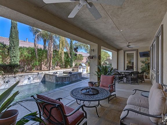 Exquisite designer former model home comprised of nearly 3000 Sq. Ft. with 5 bedrooms and 5 baths. This home is a masterpiece and perfect for a family who is ready to move right in! The stunning floor plan offers a large great room with a built in entertainment center and recessed lighting. Formal dining area and a kitchen that offers all the room an inspiring chef could desire. Other features include Kitchen aid & Whirlpool appliances, custom countertops, raised panel cabinets and a sunny kitchen dining area. Custom paint throughout that highlights all the custom details of the home. Large Master bedroom has a walk out to patio area. Master bath features include separate shower, soaking tub, duel sinks and walk in closet. The entertainer's patio offers a large pool, raised spa, multiple water features, custom misting system and a built in BBQ. Don't forget about the detached casita, courtyard with fireplace and lush landscaping. NO MELLO-ROOS!