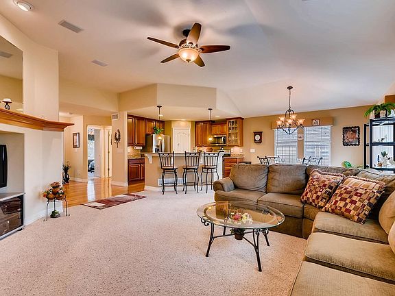 NEW PRICE IMPROVEMENT!!! Well maintained ranch home! This home is ideally located in the coveted 55+ active adult Heritage at Todd Creek, Thornton, CO. This open floor plan offers a large mater bedroom with ensuite bath. - perfect living space with inviting kitchen for entertaining. You will also enjoy a 2nd bedroom perfectly situated for privacy. This home boasts high-end finishes and custom touches including a gorgeous kitchen, brand new high end appliances, granite countertops and solid hardwood floors. The exterior is equally impressive with a covered patio with yard with professional landscaping that is perfect for relaxing! Resort lifestyle with community amenities including an award winning golf course, fitness center, pools, clubhouse, trails. Enjoy living at Heritage Todd Creek Today! Don't miss out on this maintenance free ranch home.