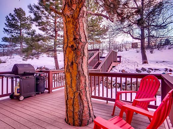 Alpine Wooded Seclusion with a Mountain Resort Vibe, Yet Mere Minutes from Everything. Towering Pines Embrace this Updated Traditional Home Perched on a Huge .68 Acre Fenced Lot! Nestled Against Acres of Dedicated Open Space, Your Tranquil Private Oasis Awaits. Enjoy the Authentic Colorado Ambiance Only the Pinery Can Provide! Note the New Driveway, Trex Decks Front and Rear, Newer Roof and Several Reglazed Windows. These Second Owners have Wisely Updated Kitchen and Baths (Installed Tile Floors in All Baths and Updated Stainless Kitchen Appliances, Counters and Sink). Outstanding Condition and Location! Stroll to Bingham Lake on the Pinery Loop Trail, Right Outside Your Front Door! Plenty of Storage in the Walkout Basement and Fido will be Right at Home with the Kennel, Dog Door and Fenced Dog Run.