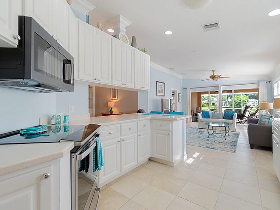 Lovely 2 bedroom 2 full bath villa with beautiful lake view. Property is furnished and turn key ready for move in! Gorgeous views of lake from kitchen, family room and master bedroom. Extended and covered outdoor space with brick pavers connects to a huge screened patio with plenty of space to entertain. Interior has open kitchen to family room and dining, split bedrooms and separate laundry room with additional storage. Newer appliances, A/C , water heater and plantation shutters as well as accordion shutters for storm protection. Villagewalk is a gorgeous and well maintained neighborhood with many amenities. Please check out Villagewalk in Wellington website for a full description of this wonderful community.