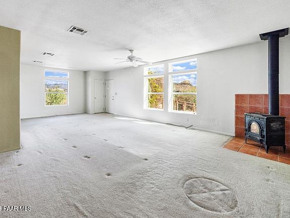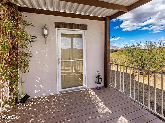Come, enjoy expansive Arizona skies, breathtaking sunsets and magnificent moderate seasons in a pastoral setting! What a gem with 360 degree views, enjoy the amazing sunsets from a large, partially covered deck. Spacious living room will accommodate a large group and the furniture to seat them. A wood stove will keep you toasty in the moderate winter months of Skull Valley. Tantalizing aromas from a wide open kitchen is a cooks dream and still be part of the activities. In the roomy master bed/bath enjoy a luxurious bath or walk in shower. The split bedroom plan is a sought after feature. With a pen and sheds, there are accommodations for your four legged friends. State land to the south allows room to ride! Check for usage. Get your slice of heaven now!
