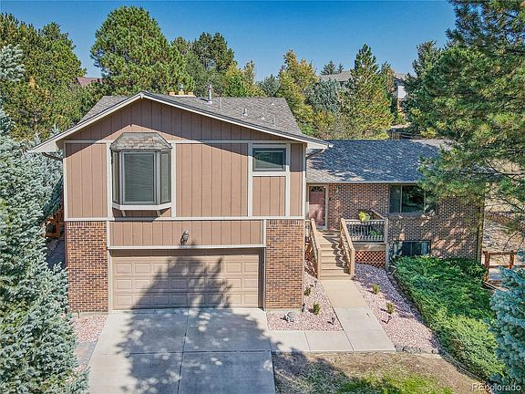 Quintessential Colorado Living on almost ½ Acre amongst the Pines in sought after Pinery Neighborhood. Private golf course community offers heavily treed and secluded lots. This Kitchen! Owners have spared no expense in their stunning kitchen renovation. Complete with open floor plan and multiple entertaining spaces, you'll love the extended alder cabinets, granite countertops, travertine backsplash, chef-worthy brand name SS appliances including 4 burner gas range with griddle+custom hood vent, double ovens/microwave, farm sink, built in wine rack and extra large breakfast bar. Beautiful wood flooring graces the first floor with open concept kitchen, dining, and living flowing into the sunken family room with beautiful stone fireplace and rustic wood beams, giving that mountain modern charm we all love. Oversized Master Suite with additional sitting area/office space with updated bath that offers a large soaking tub, European walk in shower, dual vanities, private water closet and the biggest master closet you have ever seen with en-suite laundry! Generous secondary bedrooms and updated full bath round out the 2nd floor. Multigenerational Living possibilities in the finished walkout basement providing a great space for guests or in-laws with a bright living space, large bedroom, full bath, second laundry area, and room to build out a kitchen or bar. Perfectly positioned on this lot, both patios are walk-out. Private cul-de-sac lot with fenced yard offers a large stone paver patio with solar lights and built in propane fire bowl (stays), a second private patio off of the basement, garden boxes, and plenty of room to roam/play. HOME EXTRAS: Upgraded Doors/Trim. Reverse Osmosis. Nest Thermostat. Custom Lighting. Ring Doorbell with Security Cameras. Close to Bingham Lake, walking trails, pocket parks, golf course and neighborhood schools. The Pinery Golf Club offers golf/tennis/social memberships but you do not have to join to live here. Welcome Home!