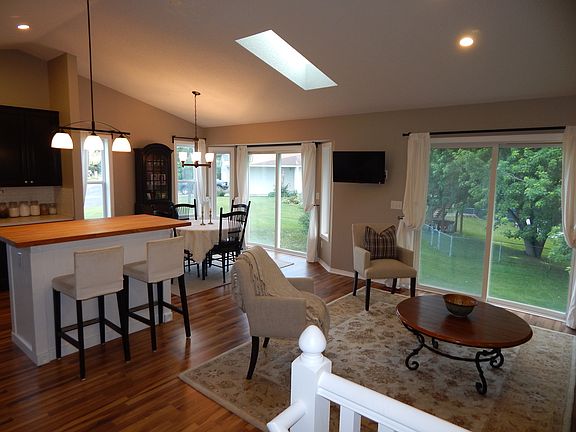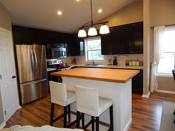 Pristine 4 Bedroom Home on Corner Lot. New Kitchen Stainless Steel Apps with Butcher Block Island, Hardwood Floors, Vaulted Ceilings, Open Floor Plan, 3 Bedrooms on Main Level, Private Master Suite w/ Full Master Bath. Walkout Basement, Gas Fireplace, Wet Bar with Granite Countertops & Tile Backsplash, Stainless Steel Wine Fridge, Oven, Dishwasher & Microwave. Large 4th Bedroom & 2nd Laundry. Fresh Paint & Clean Carpet. Private Backyard with Trees. New Roof & Newer Windows. Turn Key & Move in.