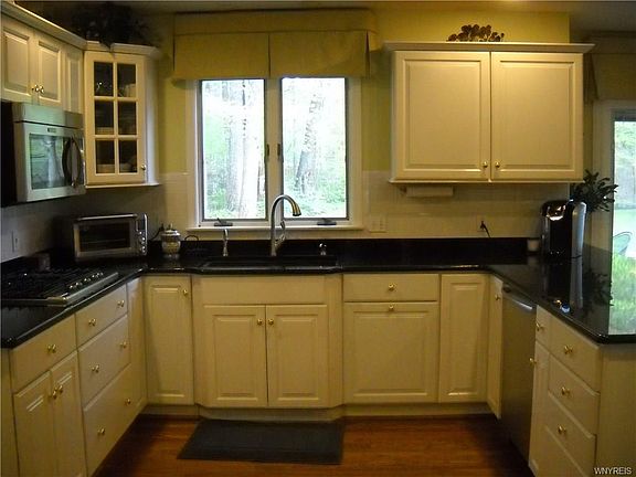 Farmington Woods Kiefer exclusive. 5 bedroom Colonial nestled on a private lot with no rear neighbors. Granite kitchen with breakfast bar, stainless appliances, brand new double ovens, built in microwave and 6 burner gas stove. 1st floor laundry.1st floor office. Formal dining and living room. Family room with gas fireplace. Newer Pella slider to stamped concrete patio, partially fenced yard with shed. 2000 tear off roof (R&R Roofing), 2010 hot water tank, 2002 furnace. Low Clarence taxes with Williamsville schools.