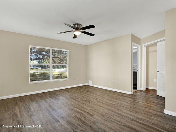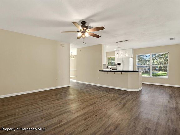 Come see this well apportioned, sun-filled home with mature landscaping in Spring Hill. This 2 bedroom, 2 bath, recently updated home is perfect for a starter home or for downsizing. There is a spacious kitchen with tons of countertop and a large sink for easy meal prep and clean up. Also a modern breakfast bar. Next to the kitchen, enjoy an open dining room that leads to your screened patio. The master bedroom is also a generous size with plenty of space for your king bed or bigger! So many things to love including a laundry room with a utility sink, vinyl flooring and tile through out, a shed for storage and large backyard with an open patio to for grilling or entertaining. Schedule your showing today.