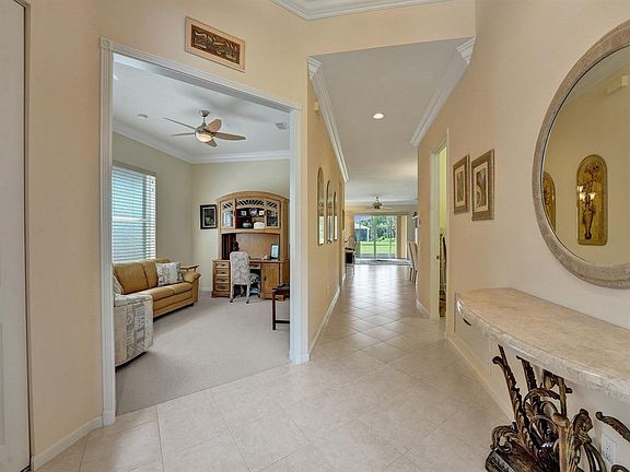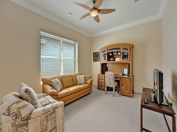 Fantastic resort style living in this meticulously maintained and sought after ATLANTIC model at Valencia Shores. As soon as you pass through the front door, an airiness provided by soaring volume ceilings and an open concept layout greets you. The great room is the heart of this home and offers access to the screened porch and provides bucolic water views. The kitchen offers ample cabinetry, granite countertops, and backsplash. Water views continue from the primary bedroom suite featuring two massive walk-in closets, a spa inspired bathroom with dual sink areas, a soaking tub, step-in shower, and private water closet. Guests and hosts alike will appreciate the split bedroom layout and the second full bath with a step-in shower. The 3rd bedroom is currently configured as an office. Valencia Shores is a well-managed +55 community offering residents the use of the stunning clubhouse and amenities, all included in the HOA. Multiple pools, gyms, cafes and activities make Valencia Shores one of the most desirable communities in the area.