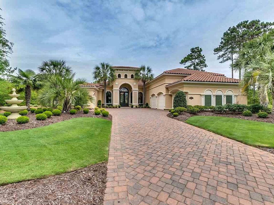 Ultimate –in-Elegance best describes this 5 BR, 6 BA, 3 ½ Car Garage, 4600 heated SQ FT home. Granite inlay foyer, grand living room features a storefront window, circular faux tray ceiling, and hand painted medallion. Wet bar with seating counter island, with a small refrigerator, icemaker, and wine rack, and easily facilitates cocktail hour. Recently built on guest house The elegant Dinning Room is encased by two cast stone columns, hand-painted tray, and the most spectacular chandelier with matching sconces. The library features a custom cherry bookcase, desk, and French doors. The Great Room provides has a cast stone fireplace accompanied with a full bath and exits into a contemporary Media Room. The summer kitchen space is complete with gas grill, refrigerator, wet bar, and decorative arched niche all enhance the outdoor living space. Choose to sit by the gas fireplace on chilly nights, swim in the custom salt water pool or just relax in the heated spa. The spacious kitchen is a Chef’s delight with custom cherry cabinetry, decorative backsplash, center prep island, two tones of granite, breakfast bar, separate pantry, and transom window over kitchen cabinets lets the light stream in. There is also a separate eat-in kitchen area and plenty of room for guests to pull up to the breakfast bar. Double doors lead into a large master suite and sitting area. A tray ceiling with tube lighting provides just the right ambient lighting. The expansive view from the bedroom windows is breathtaking. A door leads from the master suite to the back yard. Soak hours away in a jetted tub nestled under a beautiful arched wall. Peer outside the tub window to a special water feature. Cherry cabinets, beautifully tiled shower stall, custom commode, two separate granite sinks and vanity area complete the details of this finely appointed master area. Neighborhood Description Exclusive Gated Community of Grande Dunes - Cadiz Section. Community offers golf courses, one public, one private, marina, ocean club, minutes from the beach, tennis courts, and so much more!