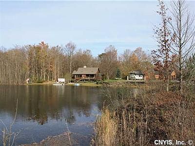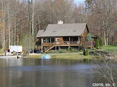 PRIVATE RETREAT. LIKE "GOLDEN POND" (2.5 ACRE APPROX POND) STOCKED WITH BLUE GILLS, BASS, PERCH AND BULLHEAD. TOTALLY PRIVATE CUSTOM HOME ON 18.5 ACRES. VAULTED CEILINGS, HARDWOODS, FIRST FLOOR MASTER BEDROOM WITH DECK OVERLOOKING THE WATER.LARGE BEDROOM ON SECOND FLOOR, LOWER LEVEL EASY 3RD. ADDITIONAL GARAGE 30 X 40' INSULATED AND HEATED ON FIRST FLOOR.