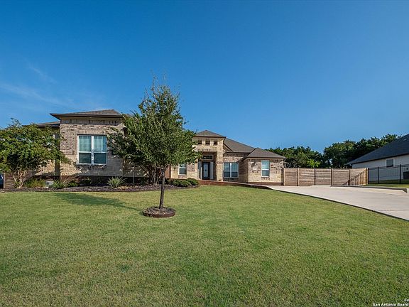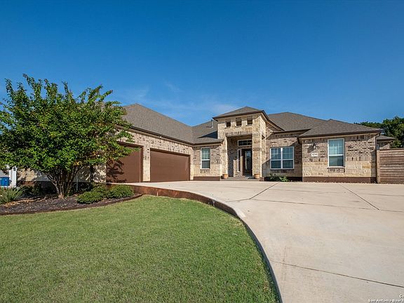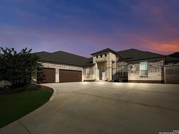 Nestled in the sought-after Woods of Garden Ridge community, this beautifully designed 4-bedroom, 3-bathroom residence offers the perfect blend of luxury, comfort, and functionality on a generous .76-acre greenbelt lot. Step inside to discover an open-concept layout ideal for both everyday living and entertaining. The heart of the home is the expansive gourmet kitchen, featuring dual quartz islands, stainless steel appliances, and double ovens - a true chef's delight. Oversized sliding glass doors seamlessly connect the indoor and outdoor living spaces, filling the home with natural light and creating an inviting atmosphere. Unwind in the backyard, complete with a covered patio, extended concrete pad, hot tub and cozy gas fireplace, perfect for gatherings year-round. The fully fenced backyard also features a dedicated dog run and a spacious 25'x35' concrete pad, currently used as a basketball court. Work from home in style in the dedicated office adorned with a sliding barn door, or escape to the private media room, fully wired for surround sound, which can also serve as a safe room. The owner's suite is a true sanctuary, showcasing a spa-like bathroom with a soaking tub, walk-in shower, dual vanities, and an expansive walk-in closet designed for organization and ease. Additional features include decorative seasonal lighting in the eaves, perfect for year-round celebrations, as well smart home technology including cameras, smart garage doors, and lighting - all conveniently controlled with an app. This exceptional home offers luxury living in a serene setting-schedule your private tour today!
