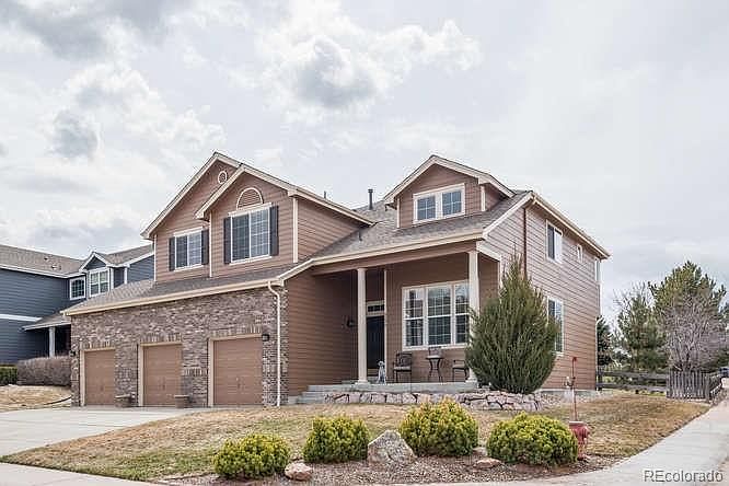 This rare Castle Pines North gem is located on a large corner lot, with an oversized 3-car garage and is ready to call home! The front porch welcomes you into a well maintained 5 bedrooms, 4 1/2 bath home. Vaulted ceilings greet you at the front door. The main level offers a formal living room, dining room, family room w/fireplace, powder bath, and functional laundry/mud room. The kitchen has been recently updated with beautiful quartz countertops, updated cabinetry, black appliances & large island, perfect for entertaining. The eating area offers access to the backyard, which has a large concrete patio, mature trees & landscaping providing a wonderful area to enjoy Colorado's beautiful seasons. Upstairs the Master Suite includes an office/den & walk-in closet. Three additional bedrooms, a 3/4 bath, and Jack & Jill bath complete this level. Fin bsmt provides a large rec. room, 3/4 bath & extra storage. New A/C & furnace 2018!Close to amenities, shopping, dining, trails, pool, etc!